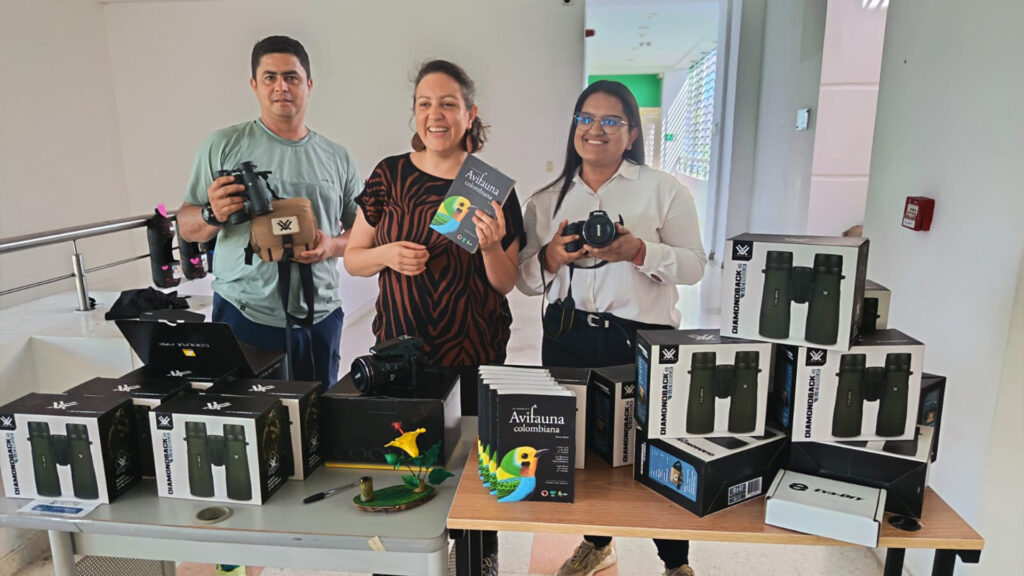Gracias a Fondo Acción, programa Conserva Orinoquía, Financiado por The Nature Conservancy (TNC). Se realizo la donación de kit de aviturismo compuesto por equipos ópticos profesionales (15 binoculares 2 cámaras, 7 guías de avifauna Colombiana y material didáctico/lúdico. Incluye dotación de vestuario (chalecos y gorros) para 30 personas, personalizado con ilustraciones de fauna nativa. Castilla La Nueva Meta, 2025.